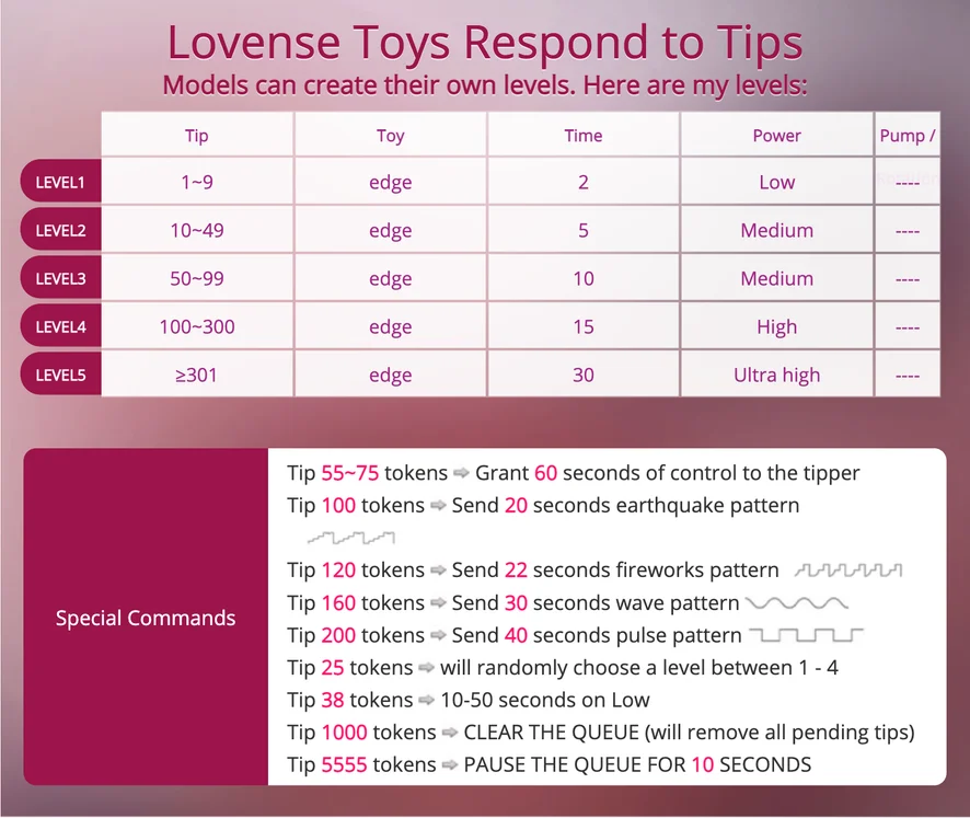 Hậu môn, Thổi kèn, Đồ chơi Hậu Môn, Cách nói Gợi Dục, Bịt miệng, Thủ dâm, Cực khoái, Đồ chơi Tình dục, Tắm vòi sen, Hút thuốc, Đánh đòn, Múa Thoát Y, Củ dildo hay Máy rung